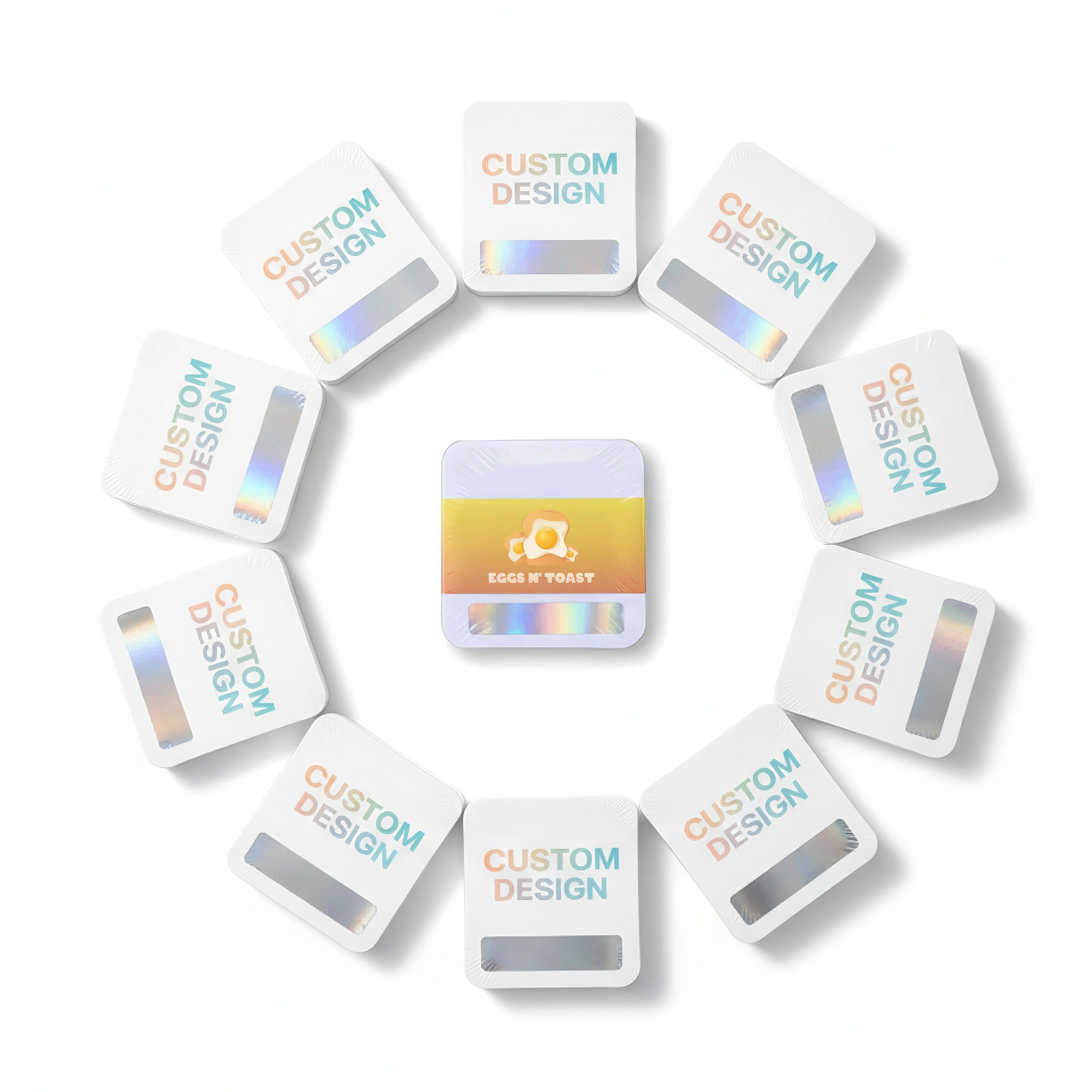 Optional holographic stickers (8mm x 40mm) added to each sheet. Perfect for hidden promotions, discount codes, or gamified campaigns. Available for an additional fee.
