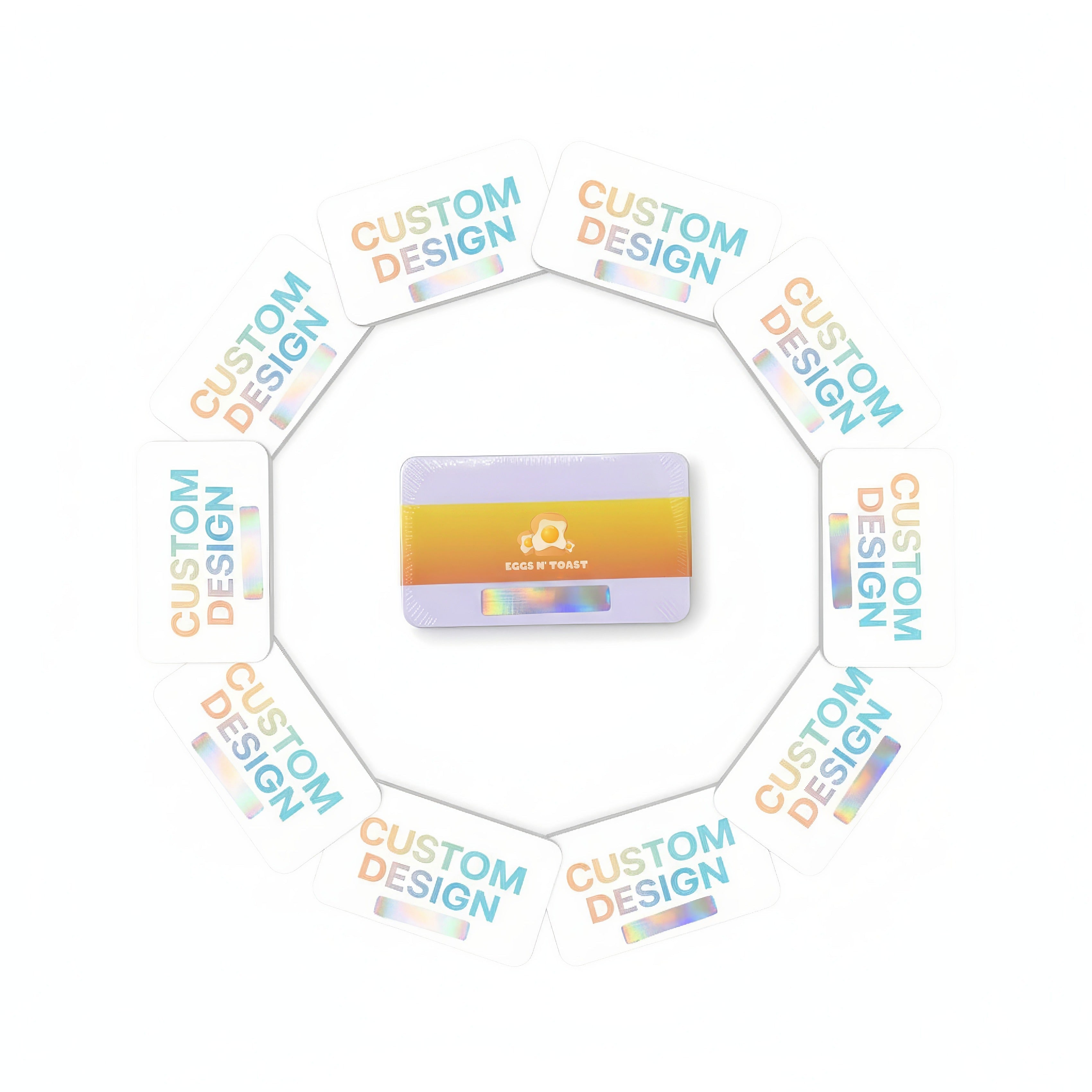 Optional holographic stickers (8mm x 40mm) added to each sheet. Perfect for hidden promotions, discount codes, or gamified campaigns. Available for an additional fee.